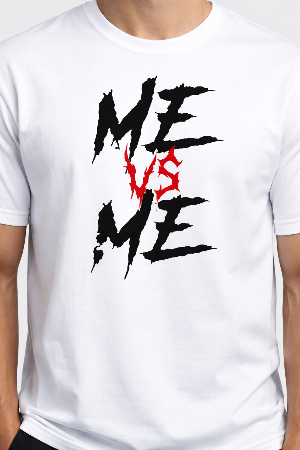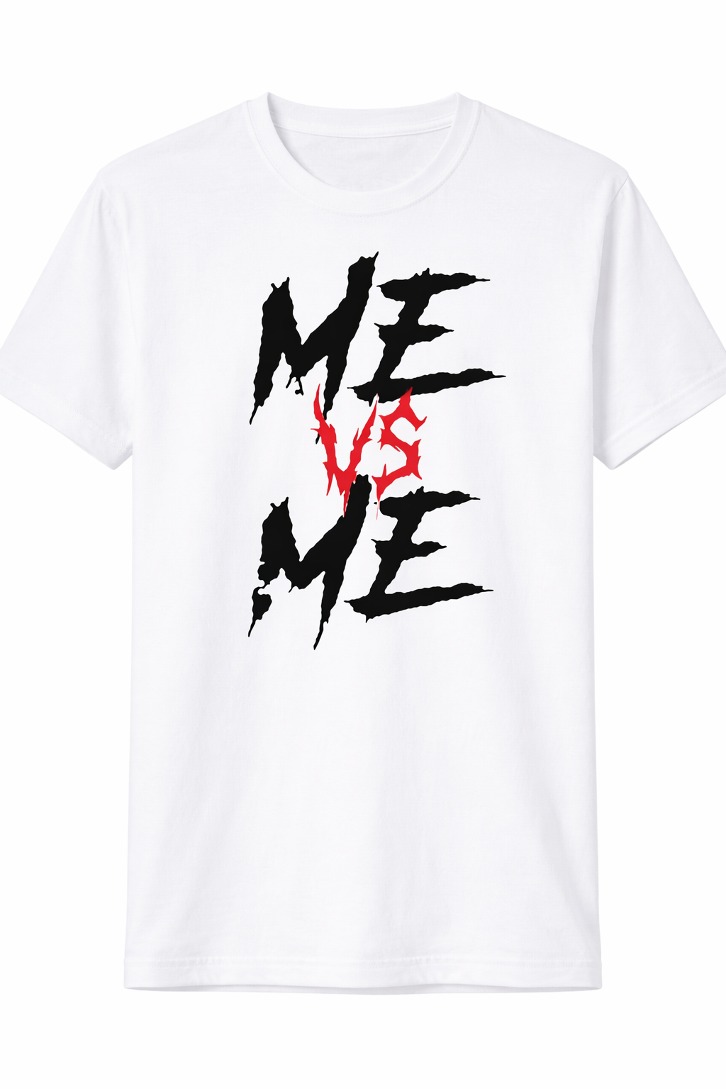 Striking “ME VS ME” front print